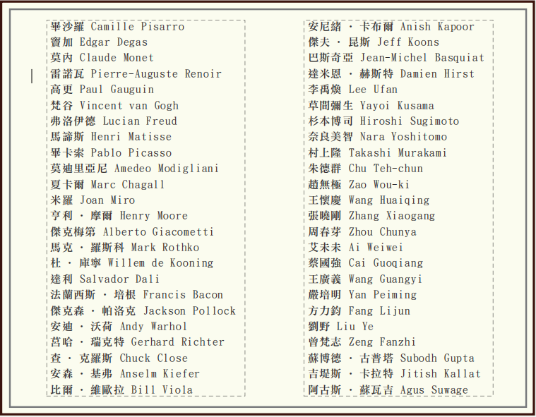 Founded in 2004 in New York and set up a branch ofce in London in the same year, Motif Fine Arts deals with the globally high-end artworks focusing on the 19th-centery, modern, and contemporary European and American art as well as Asian contemporary art and modern Chinese paintings and calligraphy. We have 13 in-house specialists with diferent specialties on operation of the actual trading. So far the total value of the artworks in our asset is more than 1.8 billion US dollars. Te works in our inventory and consigned works are mainly by artists listed as follows: